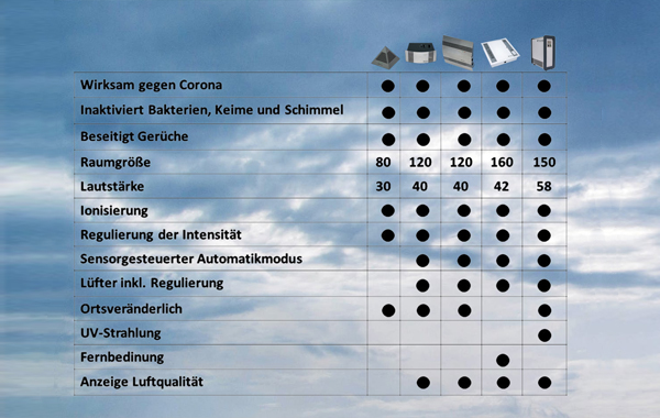 Eine gute Luftqualität bedeutet für Sie Gesundheit, bessreres Wohlbefinden und erhöhte Leistungsfähigkeit. Unsere Luftreinigungsgeräte mit bipolarer Ionisationstechnologie unterstützen Sie aktiv bei Verbesserung der Luftqualität.